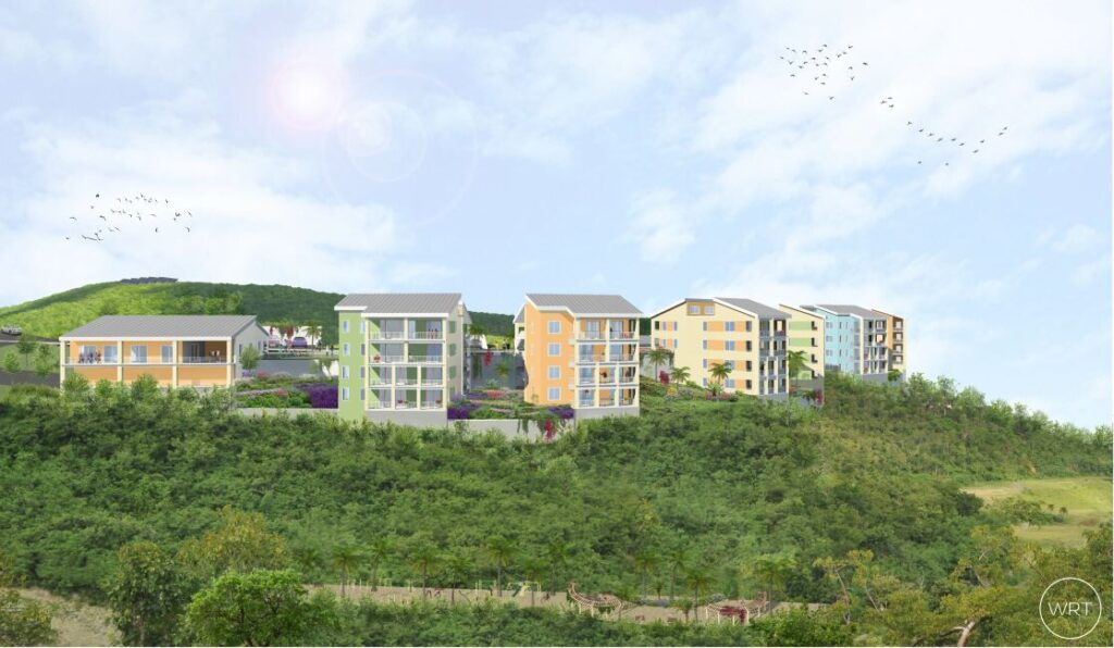 The Estate Donoe Redevelopment Project (Estate Tutu Phase I) is an 84-unit affordable rental community in St. Thomas, USVI. It includes 44 one-bedroom units (681 sq ft), 24 two-bedroom units (1013 sq ft), 16 three-bedroom units (1187 sq ft), and a community building. The Virgin Islands Housing Authority proposes 14 buildings, each with 3 to 5 stories and 5 apartments per building. All units will be affordable for low or very low-income individuals and families. There will also be a non-residential community building with a multipurpose room, exercise facilities, and management offices.