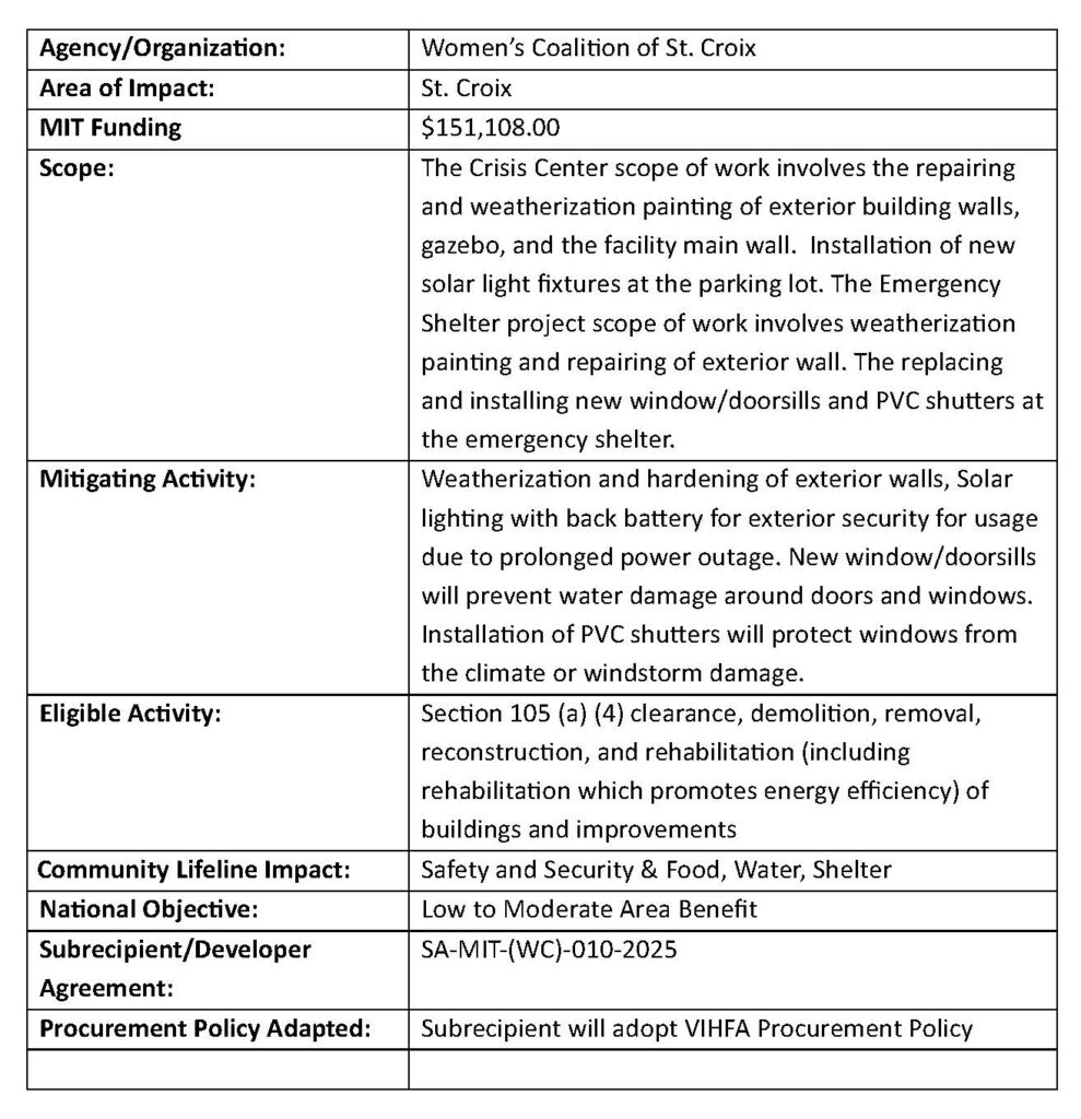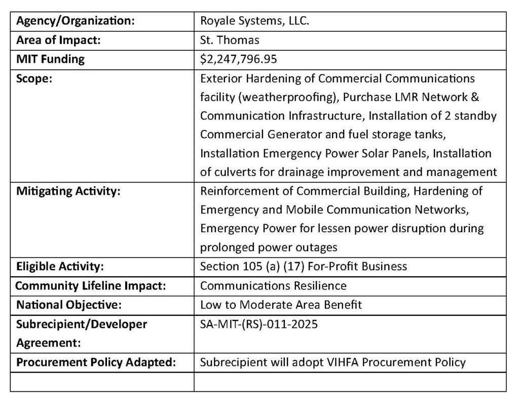The program’s goal is to minimize operational down time and accelerate recovery of commercial areas after a disaster to benefit LMI residents and others. Privately owned commercial or industrial buildings or ports may be rehabilitated or hardened to become more resilient. The hardening of marine industrial and commercial facilities is of necessary importance to the Territory due to geographic location.