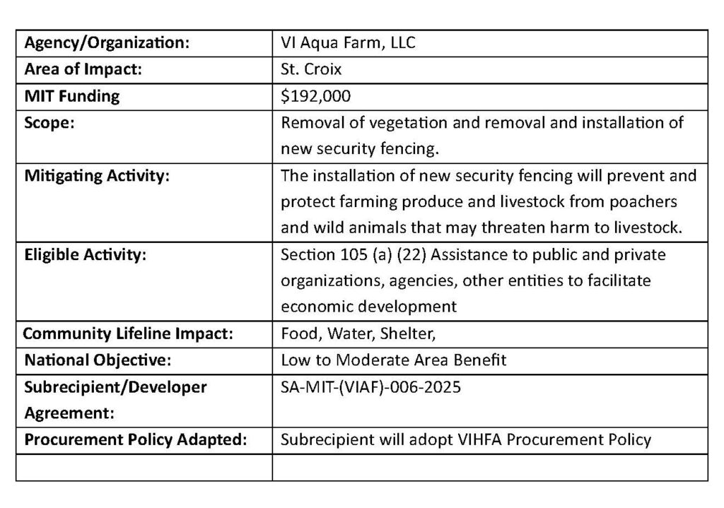 The Workforce Development Mitigation Program will prioritize training curricula for on-the-job training participants. Funds from this program may be used to purchase equipment, supplies, and information technology required for specific vocational programs only for nonprofit or public training providers that are physically located in the U.S. Virgin Islands. Eligible entities may include vocational training organizations, established providers such as universities, in addition to individuals/firms and employers with the goal of creating and supporting partnerships to develop a workforce training and if possible job placement programs for residents within the Territory.